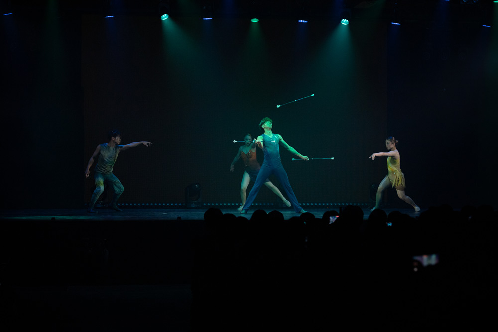 224名の出演者たちの年齢層と技術のレベルは幅広く、こうしたバトントワラーたちの個性も虹の色のように様々で、さらにはテーマ性が加味されているのがショー最大の売りとなる。