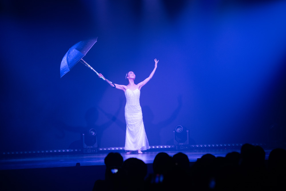 ショーの冒頭では降り頻る雨の音を背景に、青山弥生によるナレーションが客席に響き渡る。