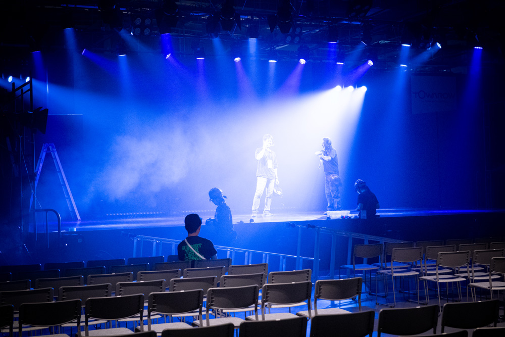 常設ステージはあるもののショーなどを上演することを想定してはいないため、まずは劇場さながらのスペースへと様変わりさせていくために知恵を絞り出す必要があった。