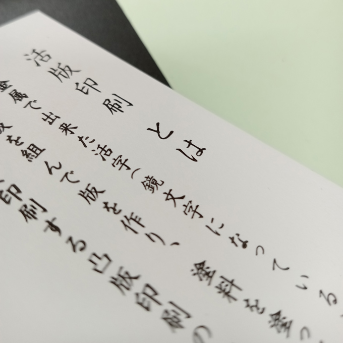 よく活版印刷のアピールポイントとして紹介されるのは、金属の活字を押しつけて印刷する過程で生まれる印刷部の紙のへこみ、凹凸ではないでしょうか。